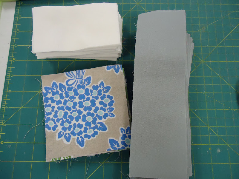 I am making Lori Holt's spool quilt, so I cut out the blocks while I decide how I want to do the borders...